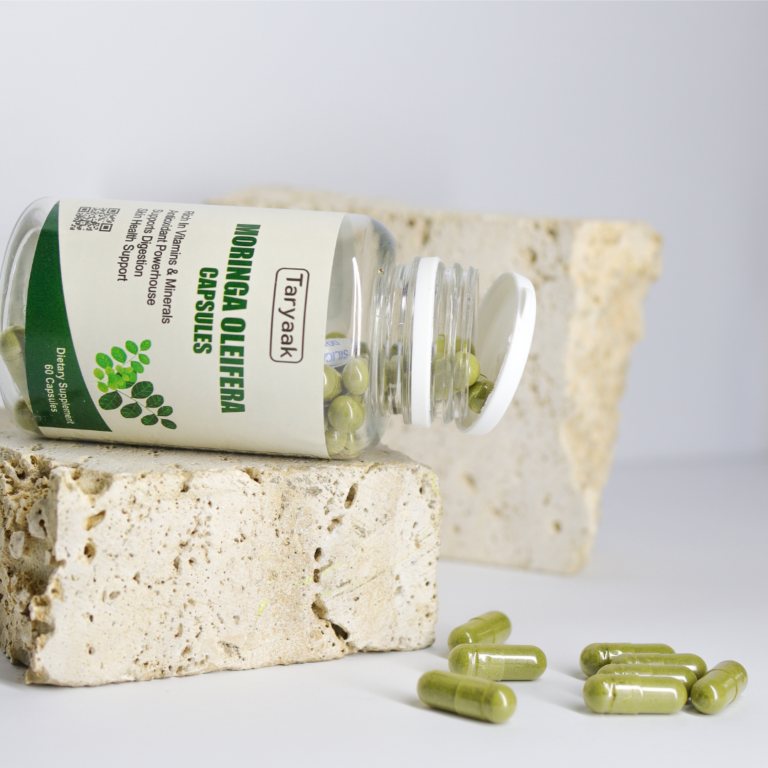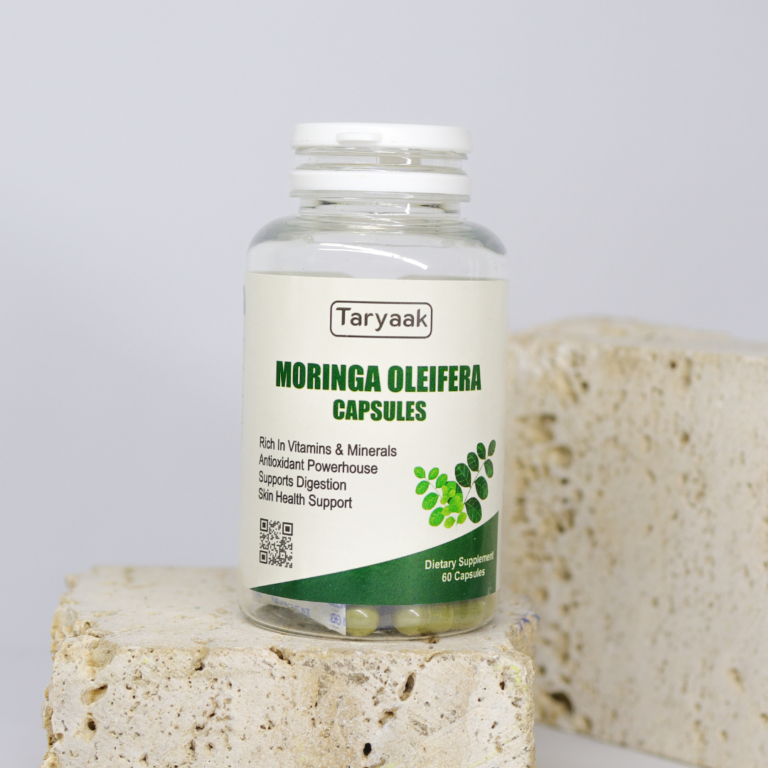 Taryaak Moringa Capsules are made from 100% pure Moringa leaf powder, known as the “Miracle Tree.” Packed with essential vitamins, minerals, and antioxidants, Moringa helps boost your energy, strengthen your immune system, and cleanse your body naturally.
